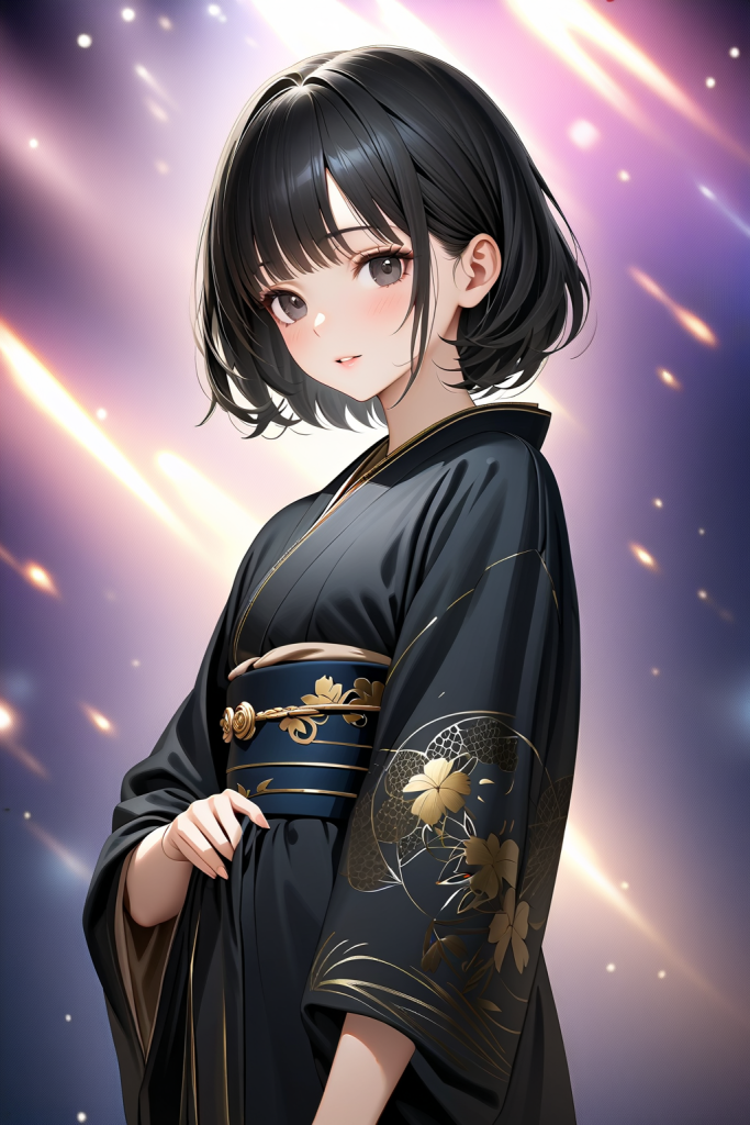 訪問着(ほうもんぎ)は、未婚・既婚を問わず着られる準礼装の着物です。最大の特徴は、肩から袖、裾へと一枚の絵画のようにつながる「絵羽模様」。結婚式の参列や入学・卒業式、お茶会、格式あるお出かけなど幅広い場面で活躍します。華やかさと上品さのバランスが良く、帯や小物次第で印象を調整しやすいのも魅力です。AIイラストでは流れるような柄配置を強調すると訪問着らしさが際立ちます。
