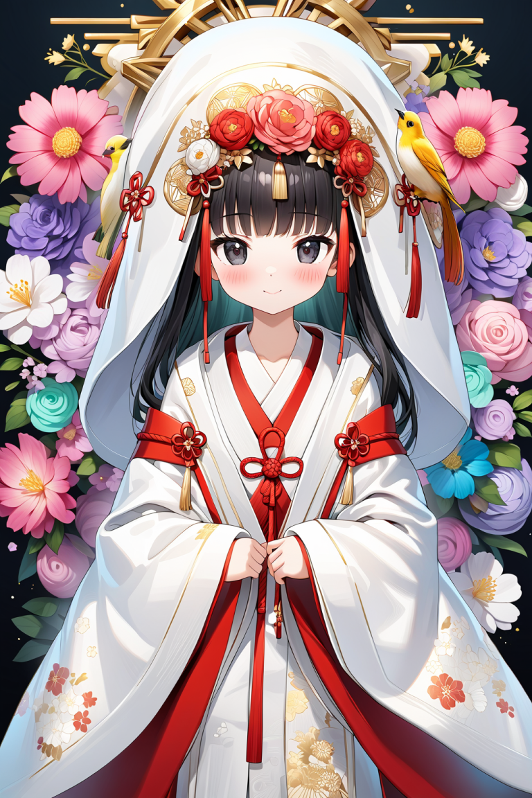 和ロリ+目隠れ。スカートの裾に青海波をさ…