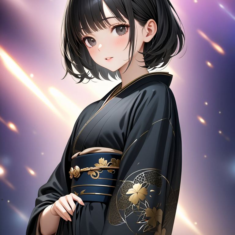 【AIイラスト】訪問着‐黒地に金彩‐